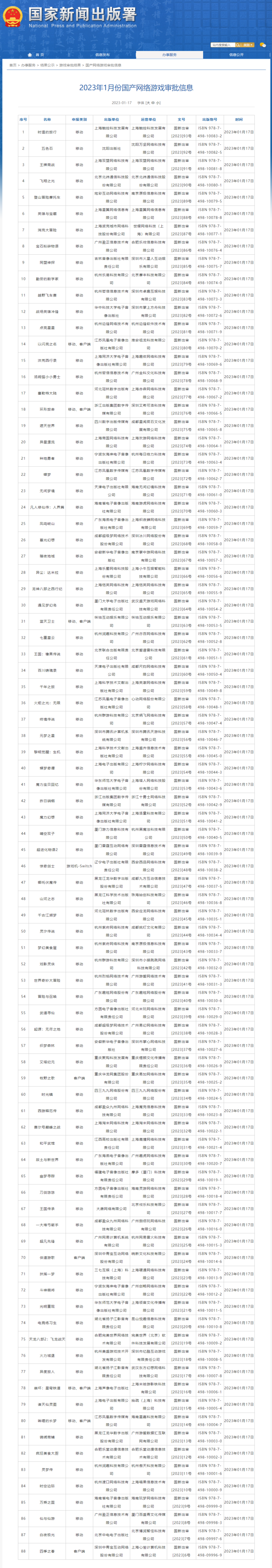 1月17日,国家新闻出版署官网公布了新一批游戏版号。